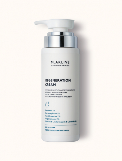 - средство косметическое Regeneration cream/ Крем-регенерант TM M.AKLIVE не оказывает кожно-раздражающего и аллергизирующего действия, что можно интерпретировать как потребительское свойство "КОСМЕТИЧЕСКИЙ ПРОДУКТ ПРОШЕЛ ДЕРМАТОЛОГИЧСЕКИЙ КОНТРОЛЬ", "СНИЖЕН РИСК ВОЗНИКНОВЕНИЯ АЛЛЕРГИЧЕСКИХ РЕАКЦИЙ"